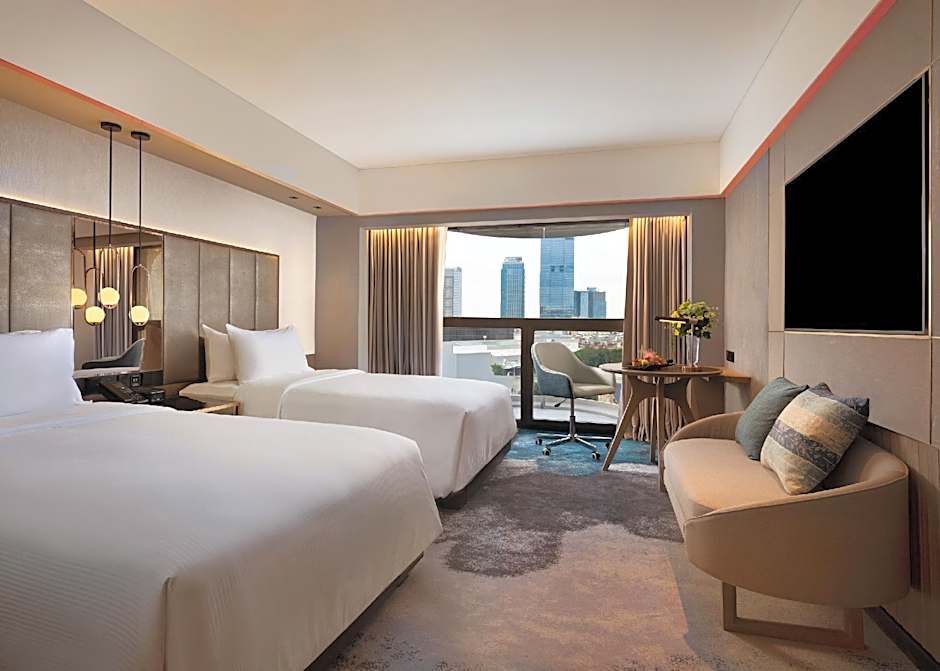 Multiple room configurations cater to different groups, including Executive, Deluxe, Suite, and Room Selected At Check In; the Executive, Triple setup offers three twin beds for up to three adults, while Deluxe, Balcony sleeps two adults and one child. All accommodations are non-smoking, with air conditioning and soundproofing for extra comfort. Room service remains available, and payments are cash-only.